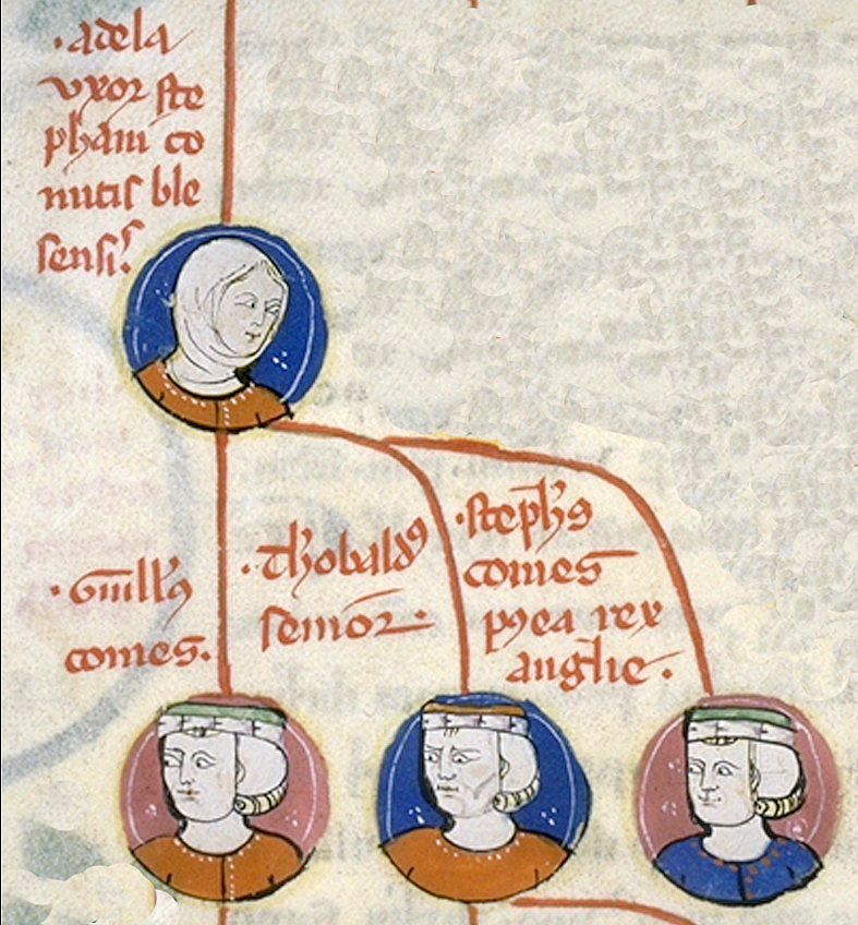 Maud and Stephen were of course first cousins, as the offspring of two children of William the Conqueror. Stephen was the son of Adela, the Conqueror’s daughter.